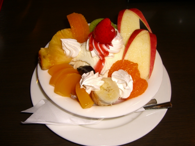 甘いもので元気になった私たち。でさ、フルーツパフェじゃないところが良いでしょ!缶詰だけどなんだかフルーツが美味しかったわぁ~。例のパフェ早く食べたいっす!!