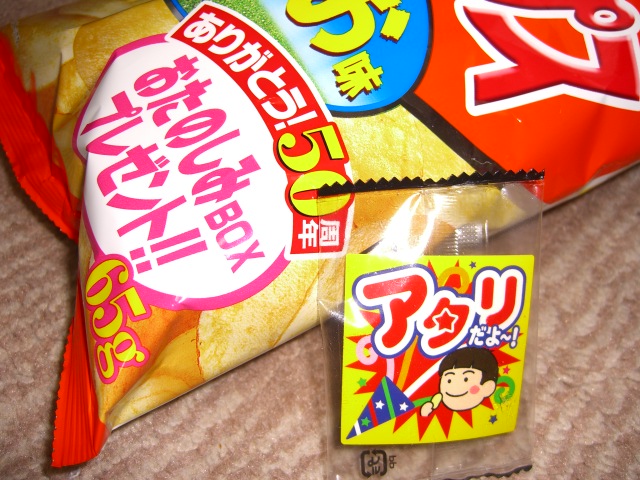 なんと、コイケヤのお菓子の袋15袋が当たったらしいです。