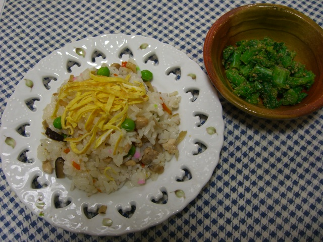 私は、酢の利いたご飯に、野菜と高野豆腐の入った具
