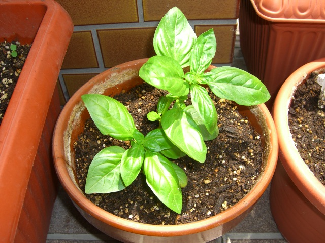 お友達に頂いたバジルの苗を植えていた、小さな植木鉢